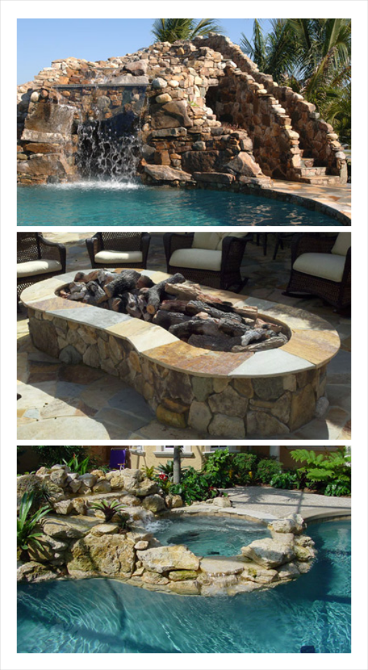 Based out of Martin County, Florida Falls and Stone Company offers complete poolscape and stonescape resort-style packages of all sizes. We offer small waterfall packages to full-size grotto waterfalls, with or without stone covered tube slides and stone stairways. Beautiful natural stone decks and raised planters are nice additions to your own personal paradise package.